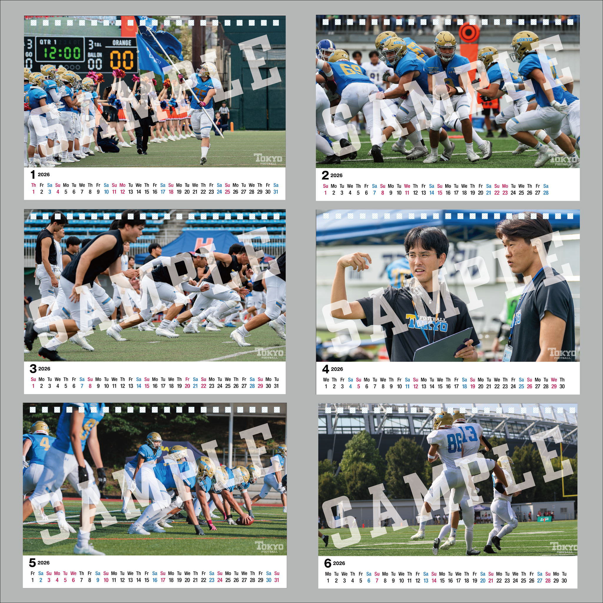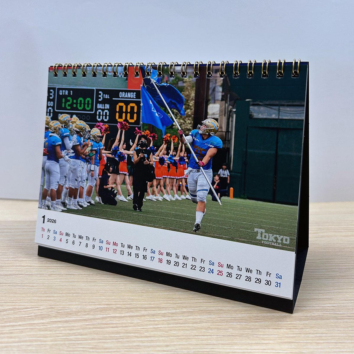 2026年1月始まり、B6サイズのオリジナル卓上カレンダー。2025年、試合で撮影したたくさんの写真の中から厳選した13枚を使用しています。迫力のある写真がデスクまわりを彩ります。